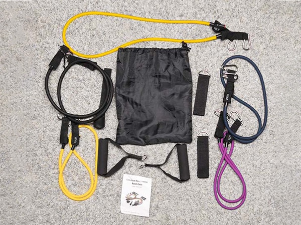 Ohjelma sisältää vastuskumisalin, jossa tulee 5 erivahvuista vastusnauhaa, oviankkuri, käsikahvat, nilkkaremmit, säilytyspussi